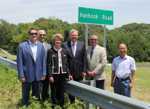 State and local officials joined representatives from Hankook on Tuesday, July 12 to celebrate the designation of Hankook Road, the segment of SR 237 (Rossview Road) beginning at the entrance/exit turnouts of the west side of Exit 8 from I-24 to the Rollow Lane intersection.